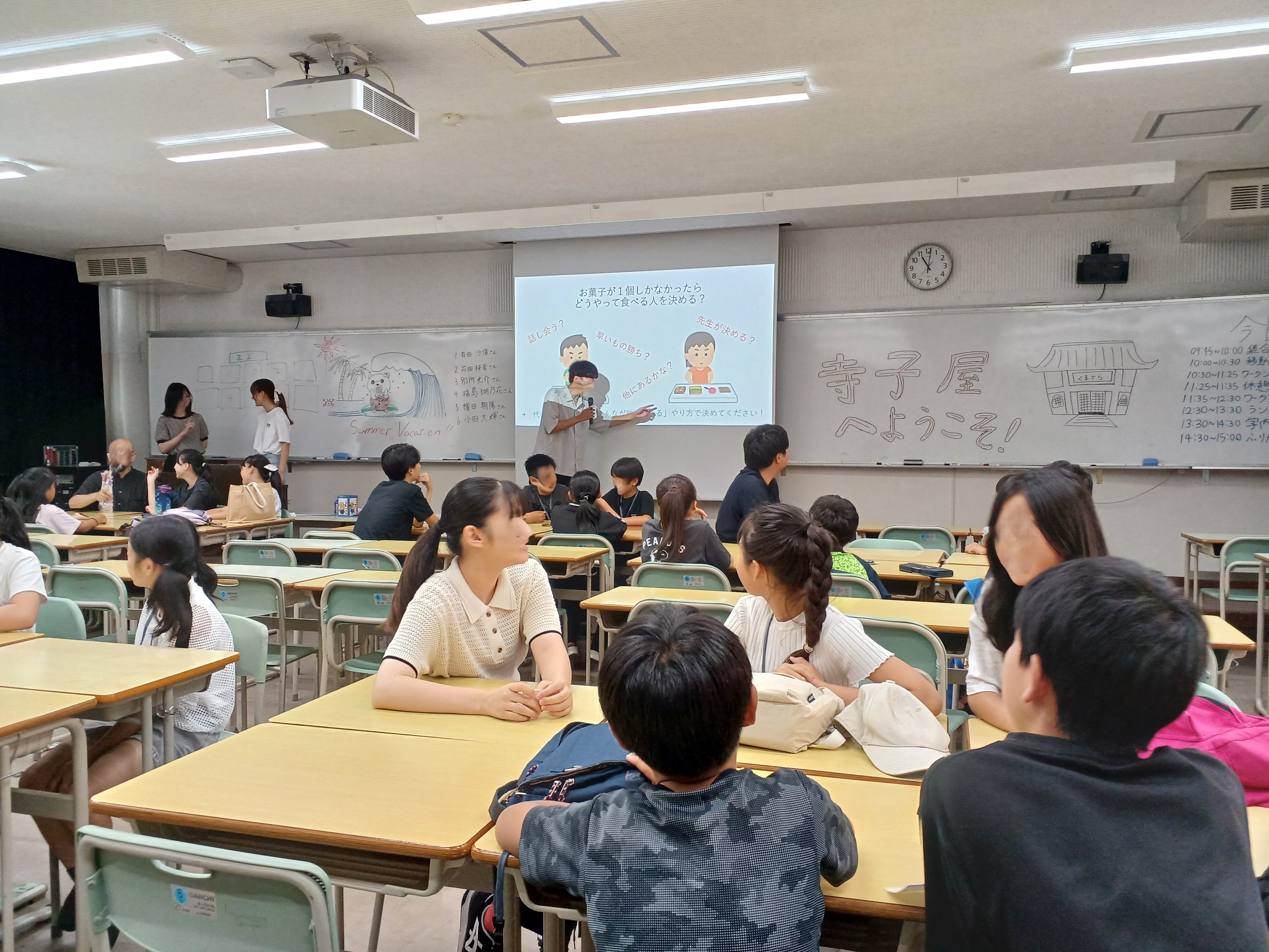 今年の島大寺子屋は、「子どもたちに普段とは違う学びを体験してもらいたい」という思いから、島根大学法文学部の毎熊先生の協力を得て、行政学ゼミとのコラボ企画が実現しました。