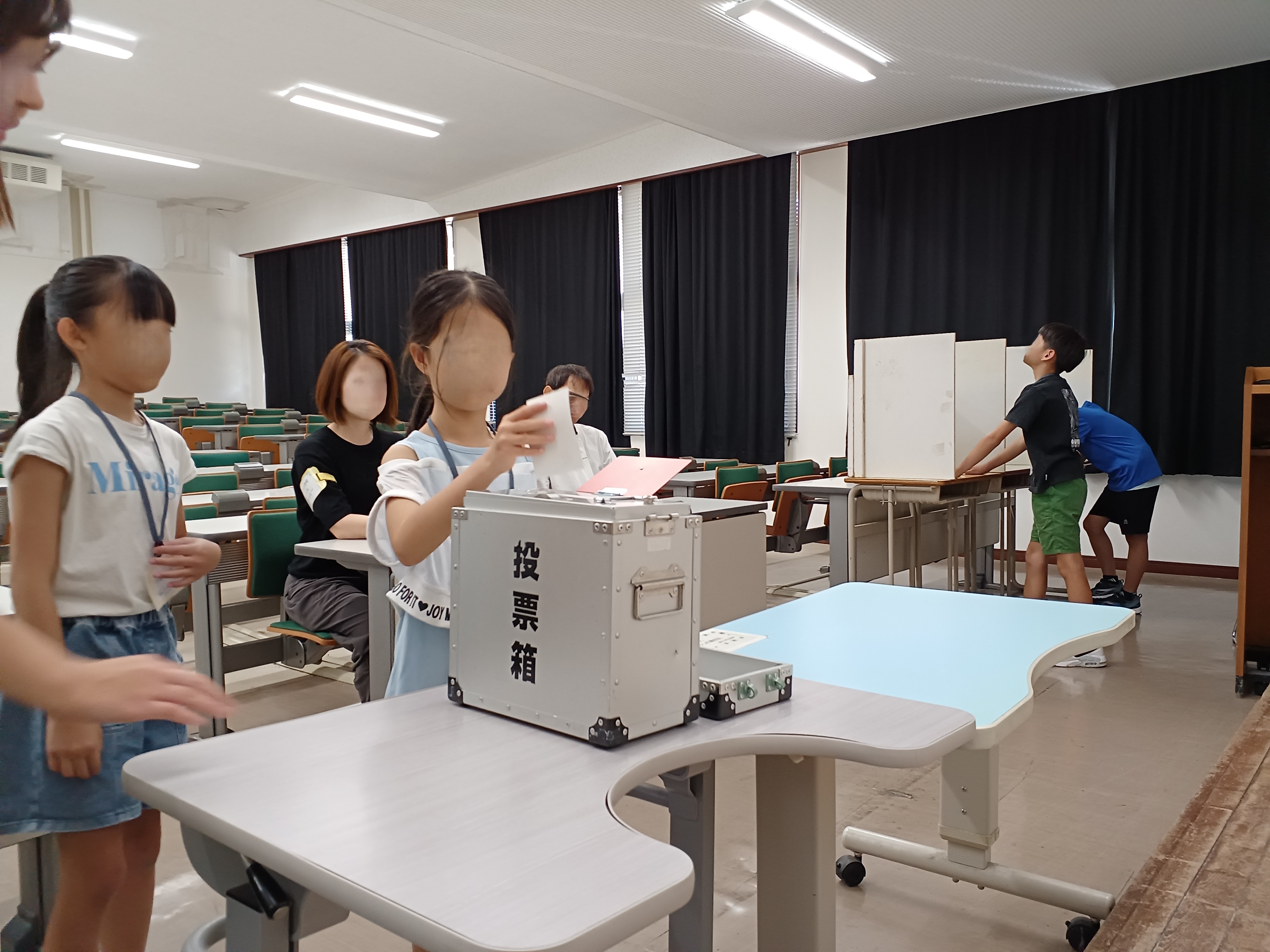 松江市長選を題材とした模擬投票では、本物の投票所セットが準備された『投票会場』で投票を体験し、松江市長に届ける『子どもたちの声』を書きました。(後日、市長に届けられる予定です。)