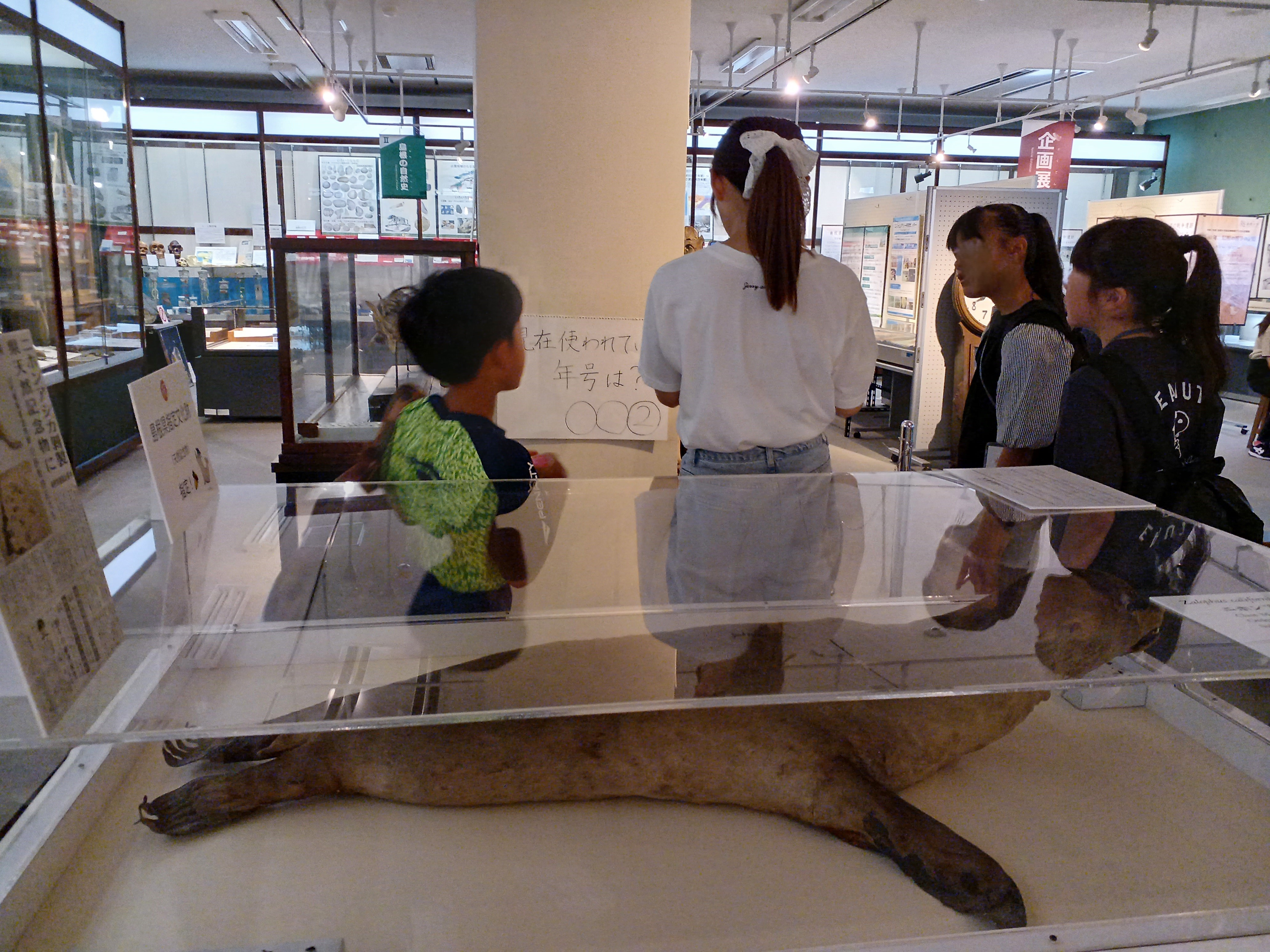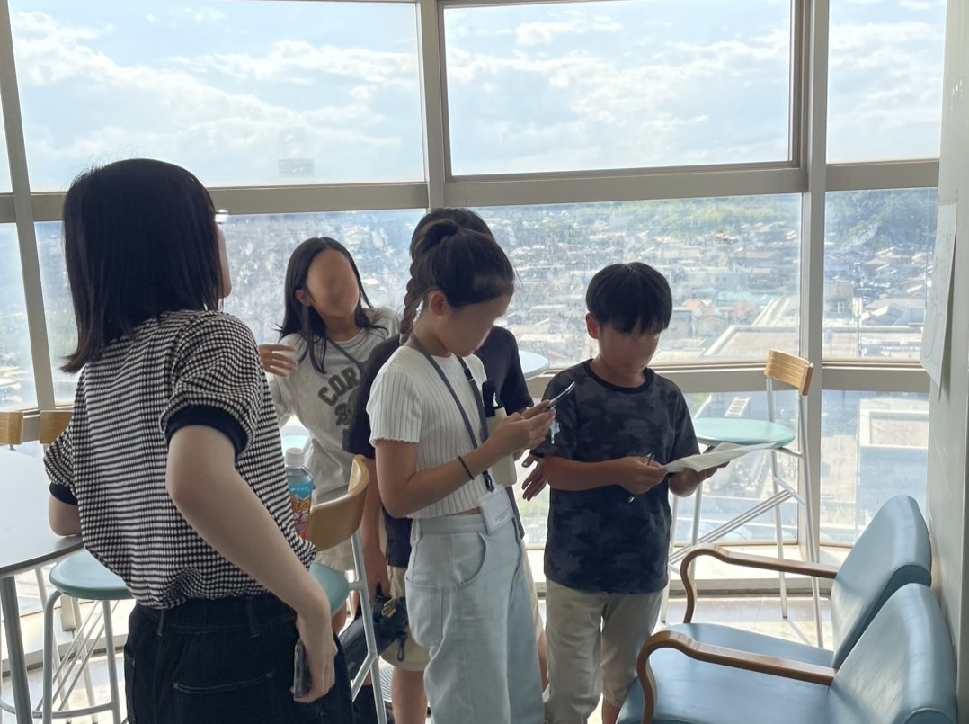 午後は、グループごとにクイズに答えながら学内を探検。毎熊先生の研究室、生物資源科学部最上階、博物館アシカルなどに行きました。
